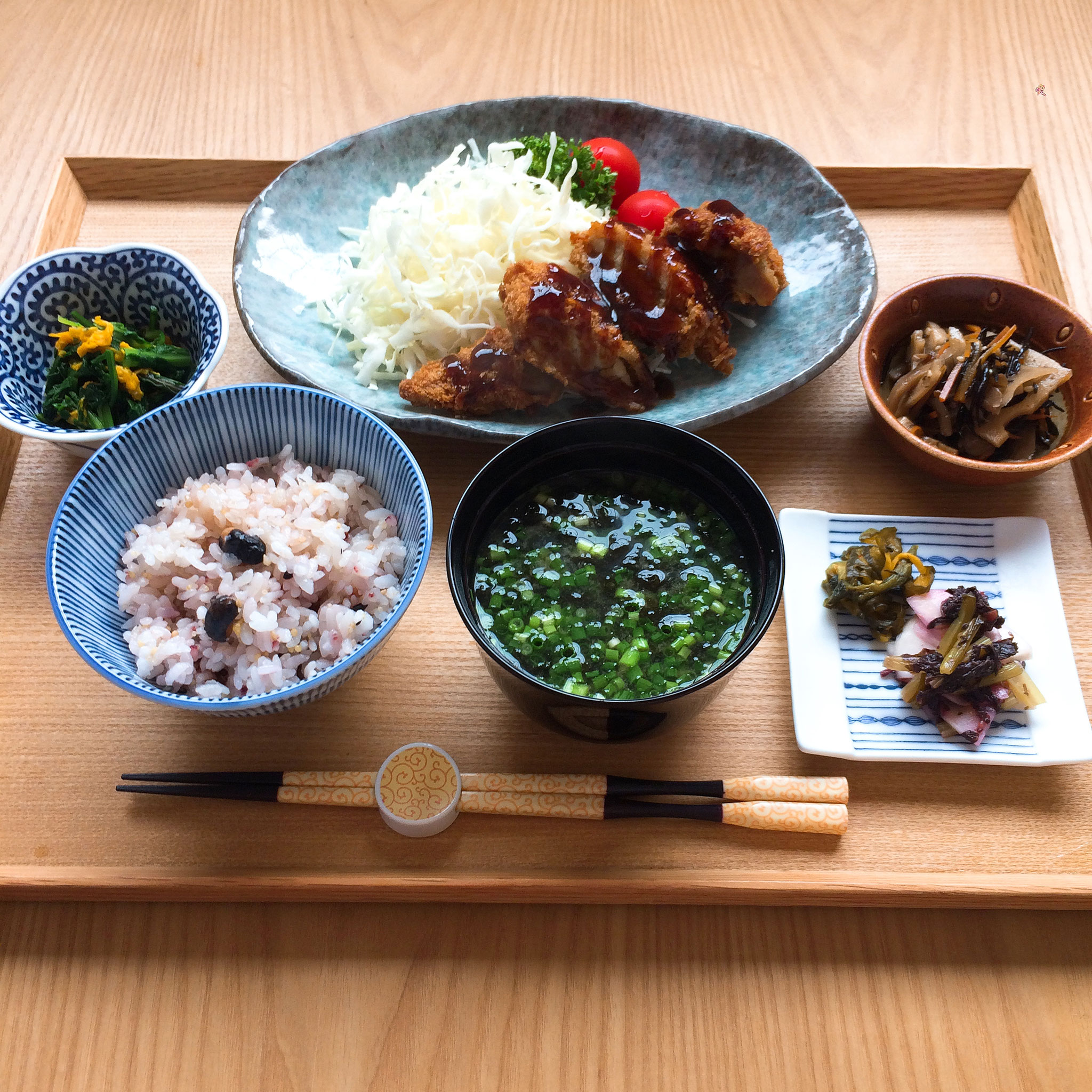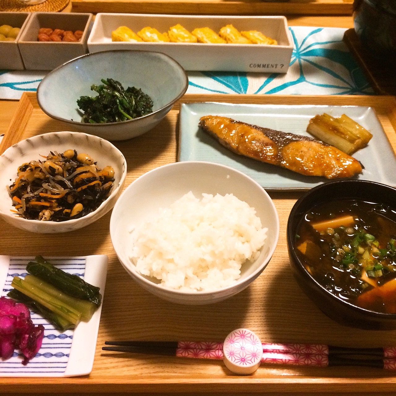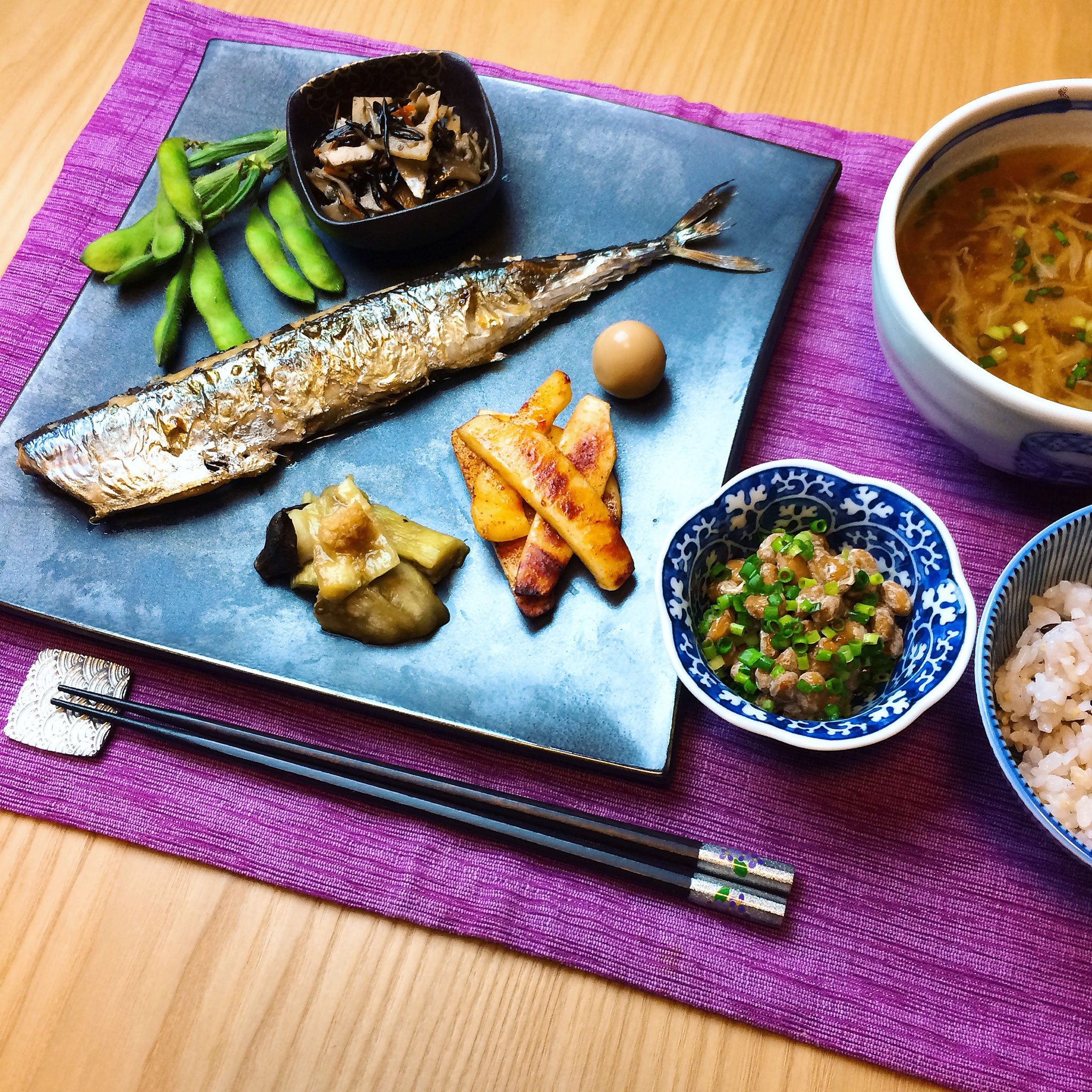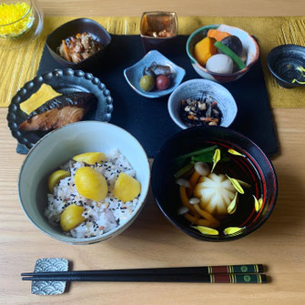 Make "Ichi-ju sansai(one soup and three dishes)" of seasonal ingredients